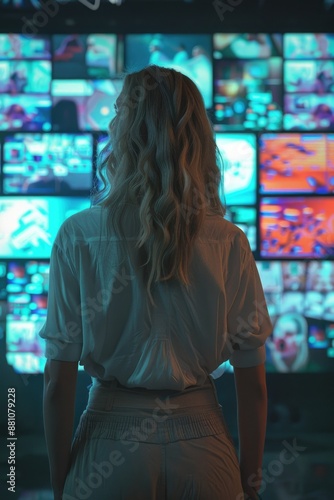 woman, television, television, screen, screen, broadcast, broadcasting, media, electronic, store, display, display, tech, technology, innovation, human, person, people, audience, viewer, watching, watch