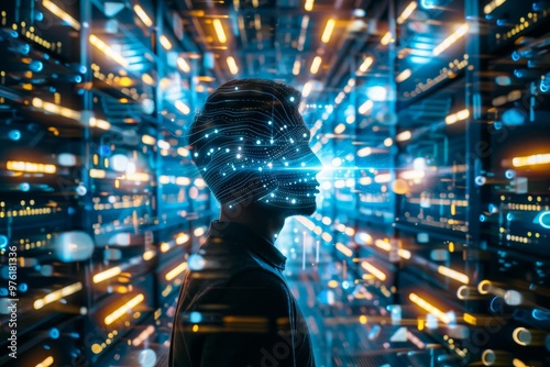 technology, artificial intelligence, network, profile, light, innovation, future, cybernetic, night, computer, circuitry, person, silhouette, glowing, server, bright, illumination, modern, abstract, digital artwork, connectivity, information, electronic, atmosphere, database, electronic, fantasy, vision, ambience, advanced technology, graphic design, creativity, design, projection, interconnected, spacial, system, abstract art