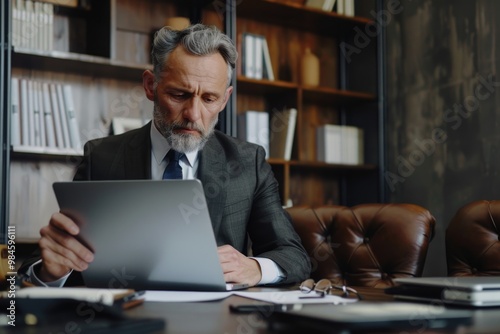 man, laptop, work, office, computer, technology, businessman, entrepreneur, corporate, professional, occupation, job, desk, sitting, indoor, adult, male, human