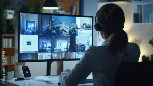 person, using, digital, home, security, system, monitor, property, residential, setting, screen, displaying, video, eat, high technology, style, photo, wide, shot, focusing, smart, ample, white, space, center, text, high, quality, image, surveillance, technology