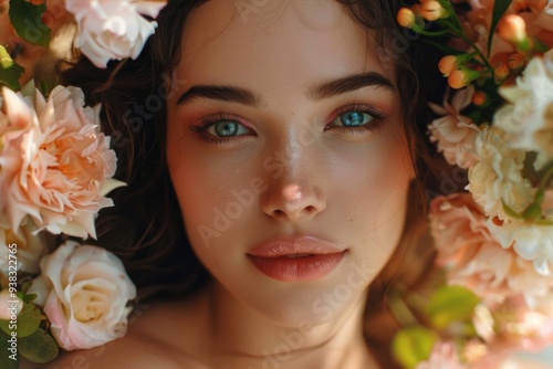 A person with a flower crown worn on the head
