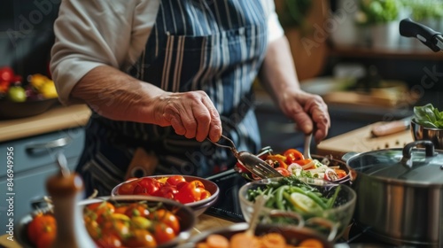 kitchen, food, healthy, vegetable, cook, salad, chef, fresh, knife, vegetarian, person, hand, preparation, cut, lifestyle, meal, organic, adult, woman, tomatoes, dinner, female, board, home, diet, chopping, green, table, indoor, cookery, dish, lunch, professional, vegan, occupation, closeup, nourishment, carrot, holding, house, background, profession, culinary, red, catering, eatery, young, cucumber