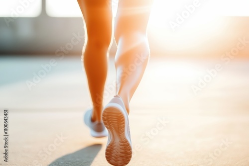 A person's legs running on a paved road with the sun shining. - Generative AI