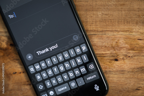 A phone with a keyboard on it that says "thank you" on it ready to send a message