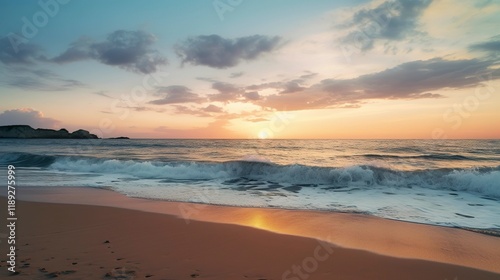 A photo of a beach sunset with smooth sandy shores