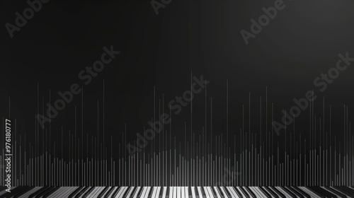 A piano keyboard with white and black keys, represented by vertical lines on a dark background