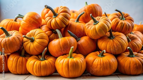 A pile of bright orange pumpkins resting on a white surface, perfect for autumn displays and seasonal recipes