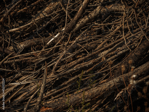 A pile of dry twigs as a background.