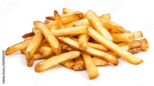pile, golden brown, french, fries, crispy, exterior, soft, each, texture, appetising, appearance, captured, precision, set, isolated, white, background, emphasize, delicious, attracted