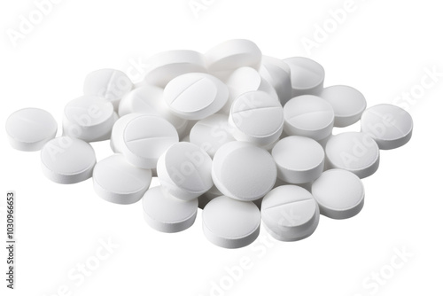 A pile of white pills on a clean surface, representing various medicinal uses.