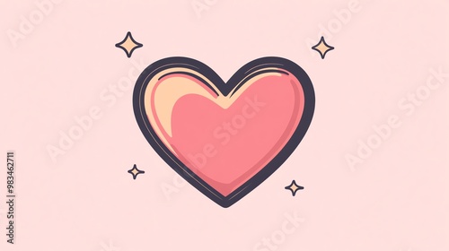 A pink heart with a black outline and sparkles on a pink background.