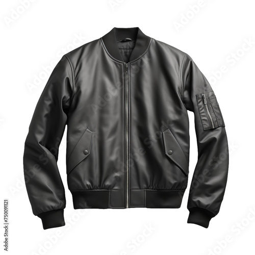 A plain black bomber jacket isolated on transparent background, png