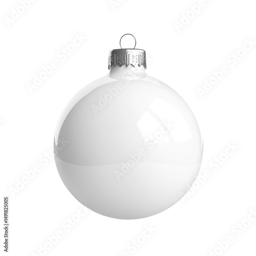 christmas, ornament, ball, white, holiday, decoration, sphere, round, glossy, shiny, christmas, winter, festive, celebration, tree, bauble, hanging, decor, design, element, template, blank, simple, elegant, classic, isolated, background, three-dimensional, render, model, rendering, illustration, image, product, photo
