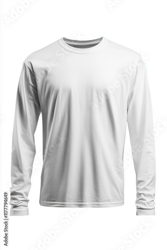 A plain white long sleeve T-shirt mockup on a mannequin or hanger, isolated on white background its simple design and fabric texture.