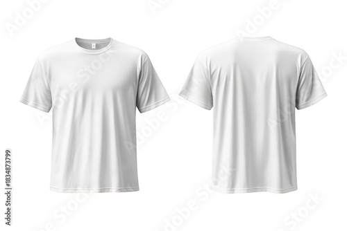 A plain white t-shirt displayed from the front and back. its simple design. ideal for custom printing or promotional use. set against a neutral background