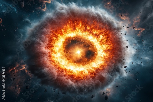 A planet’s core in the process of formation, surrounded by space dust and swirling gases