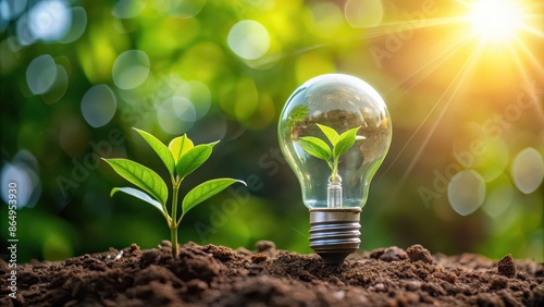 A plant with a light bulb representing sustainable energy, green energy, eco-friendly, renewable, innovation