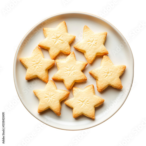 A Plate of Buttery Shortbread Cookies Shaped Like Stars Isolated on Transparent Background
