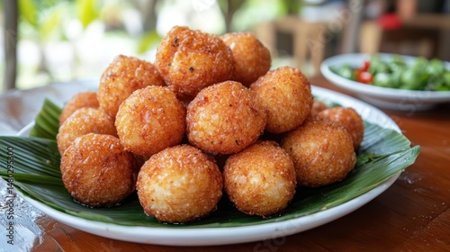 A plate of deep-fried Chempedak fritters with a crispy coating