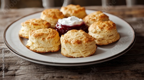 biscuit, jam, cream, plate, food, dessert, baked, sweet, fluffy, homemade, delicious, treat, breakfast, snack, pastry, butter, flour, sugar, baking, receipe, serving, epicure, cookery, traditional, brunch, indulgent, fresh, warm, tasty, crispy, gold, soft, round, topping, garnish, share, enjoy, favor, aroma, culinary, presentation, festive, gathering, comfort, savoury, pairing, afternoon, delightful, simple