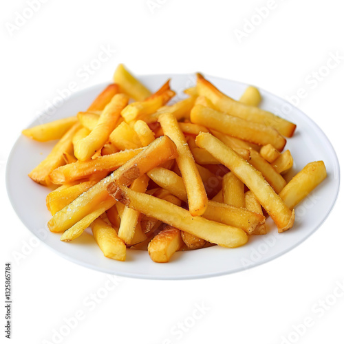 A plate of golden-brown French fries, crispy on the outside and fluffy inside, served in a casual dining style.