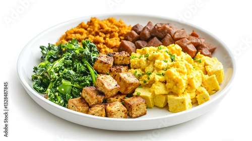 plate, scrambled, tofu, isolated, white, breakfast, white background, delicious, food, fiber, set, leaf, portion, fruit, horizontal, looking, eat, no people, pouring, assorted, whole grain, working, market, fitness, dish, gardening, meat, meal, dinner, rice, cookery, pork meat, lunch, salad, sauce, fried, vegetable, chicken, epicure, beef, spicey, green, healthy, meatball, cooked, meatball