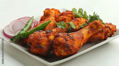 chicken, spicey, food, plate, garnish, cilantro, onion, green, chilies, cookery, meal, dish, cooking, receipe, favor, grill, bar-b-q, protein, savoury, delicious, herb, fresh, presentation, dining, eat, feast, culinary, snack, platter, eatery, tender, crispy, aroma, seasoning, enjoyment, taste, indulgence, nourishment, epicure, vibrant, colours, texture, sharing, culture, tradition