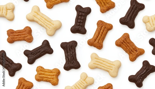 A playful assortment of fun-shaped dog treats in various textures, offering a perfect combination of taste and nutrition for pets