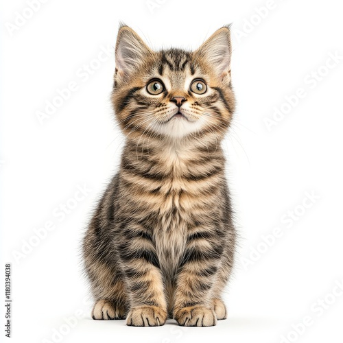 A playful tabby Genetta cat sitting adorably with bright eyes, radiating charm and curiosity, perfect for pet-themed content.
