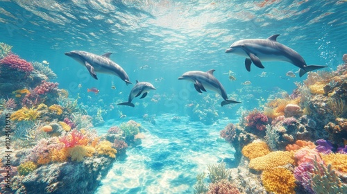 dolphin, coral reef, ocean, underwater, marine life, sea, fish, water, blue, turquoise, nature, wildlife, animal, aquatic, tropical, reef, colourful, vibrant, beauty, life, sunlight, sunshine, bright, happy, joyful, peaceful, swim, jump, playful, group, pod, school, ecosystem, environment, conservation, biology, natural, ocean life, ocean life, oceanography, diver, scuba diving, snorkeling