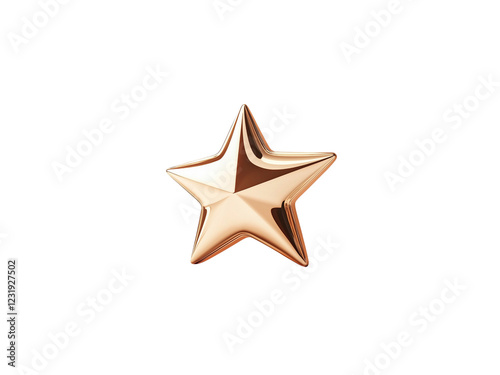 A polished, rose gold star with a three-dimensional design showcasing sharp angles and reflective surfaces.