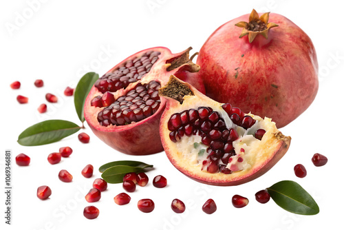 a pomegranate with seeds isolated on white background.AI GENERATED