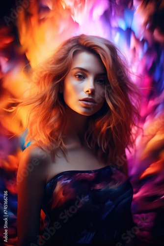 A pop art fantasy with a woman surrounded by a rainbow of colors