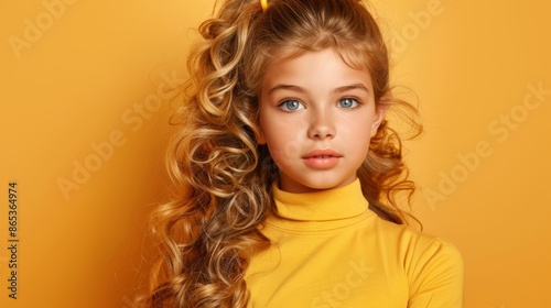 girl, portrait, blond, curly hair, yellow, turtleneck, young, children, beautiful, eye, fashion, closeup, studio, colourful, vibrant, background, innocence, cute, cheerful, bright, face, looking, modern, coiffure, indoor, sunny, happy, childhood, beauty, clothing, youth, simplicity, style, pretty, soft light, head shot, children, daytime, woman, hair, model, make-up, long, glamour, curly