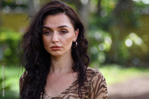 woman, portrait, young, beautiful, beauty, hair, face, brunette, smile, people, nature, happy, person, summer, smiling, green, outdoors, fashion, model, spring, 1, park, teenage, white, beauty parlour, natural makeup, eyes closed, eyelash