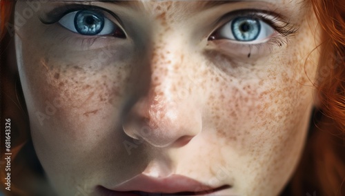 A Portrait of Natural Beauty: Close-Up of a Woman with Delicate Freckles
