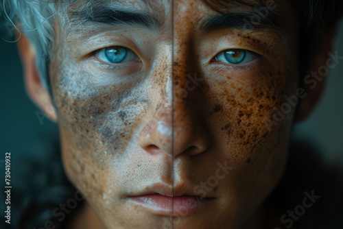 A portrait photograph with AI-based age progression, offering a glimpse into the potential future appearance of the subject. Concept of AI-driven time manipulation. Generative Ai.