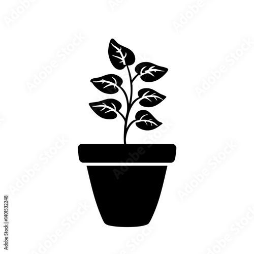 A potted plant vector icon with leaves
