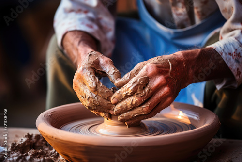 A potter's hands shaping a clay vase, capturing the essence of creativity and craftsmanship. Generative Ai.