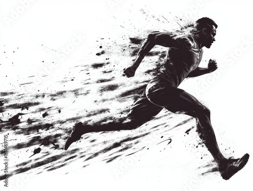 athlete, running, motion, black, white, sport, action, fitness, speed, exercise, health, intensity, sharpened, determination, endurance, competitive, physical, training, model, fast, pace, performance, professional, inspiration, gear, sneaker, track, field, race, achievement