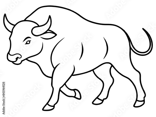 A powerful buffalo charging in line art style