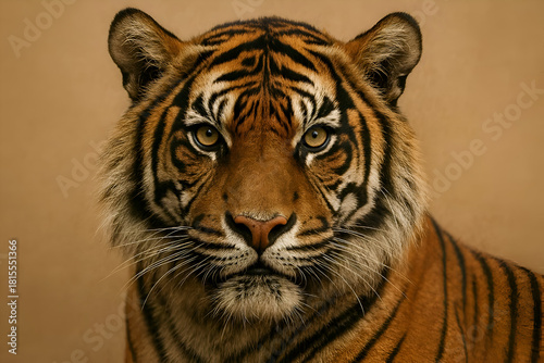 A powerful close-up portrait of a Sumatran tiger with intense eyes.