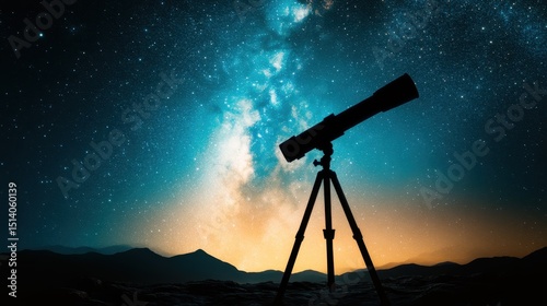 A powerful telescope silhouetted against a breathtaking starlit sky filled with twinkling stars and the Milky Way, symbolizing exploration and curiosity about the universe.