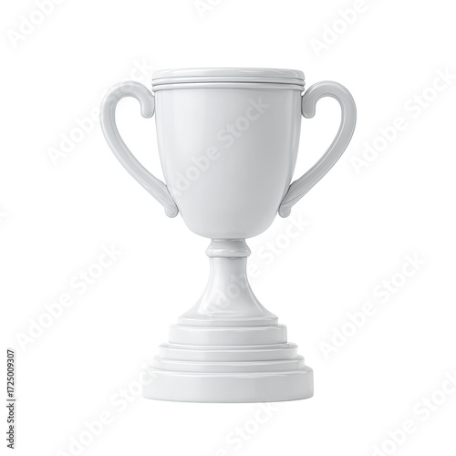 A pristine white trophy with two handles, a pedestal base, and a classic urn-shaped cup