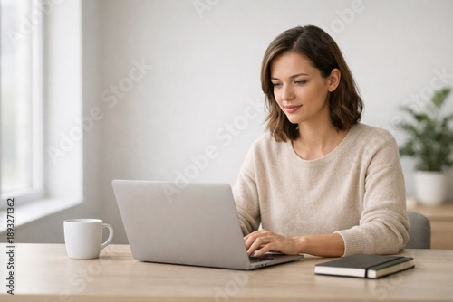 A Professional Woman Working on Laptop in Minimal Home like Office