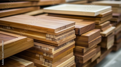 A prominent stack of unfinished wooden picture frames, meticulously prepared for diverse crafting and bespoke customization ventures.
