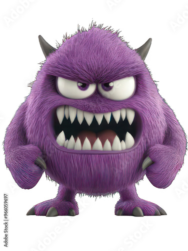 cartoon, monster, purple, comic, halloween, isolated, character, angry, expression, fierce, face, animated, creature, decoration, cute, quirky, design, feature, colourful, whimsical, skittish, playful, fright, fun, childish, scarey, figure, illustration, fantasy, three-dimensional, character, teeth, toy, furry, beast, mutant