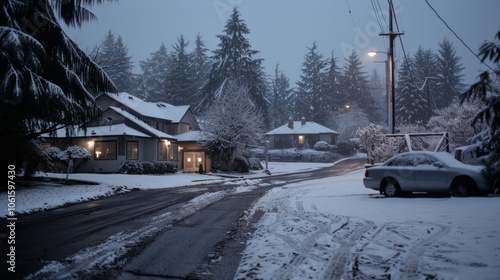neighbourhood, snow, winter, twilight, house, calm, serene, evening, peaceful, street, cosy, snow-covered, winterly, cold, rural, festive, tranquil, dusk, glow, quiet, landscape, seasonal, frosty, road, soft light, outdoors, illumination, snowfall, urban, holiday, residential, winter landscape, beautiful, picturesque, chilly, village, calmness, night time, coldness