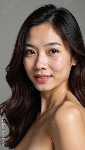 A radiant Thai woman with beautiful curls exudes confidence in an adult doll-style portrait