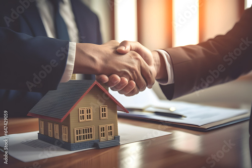 A real estate agent handing over a property title or contract to a client, bokeh. generative ai